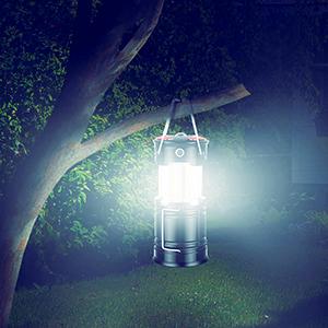 - Super Bright & Large Area Brightness. products-supplies.com The latest COB bulbs offer ultra-bright lights.360 degree coverage lighting provide high visibility to meet large area brightness. 4 lighting modes.Collapsible COB LED Lantern.Flashlight. Red Warning Light(Strobe & SOS light). LED camping lantern is a vital filed survival tool and camping accessories.